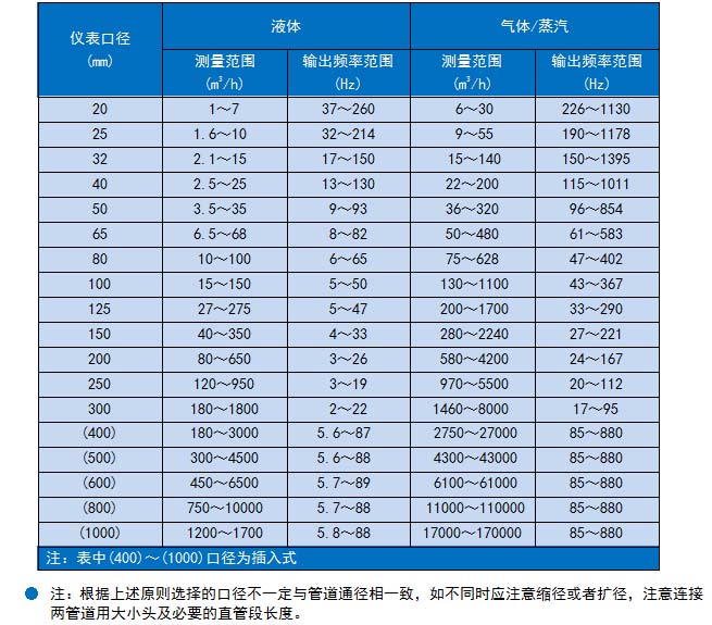 工況體積測量范圍表